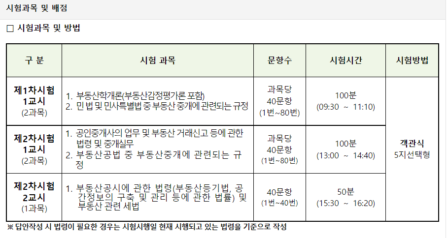※ 1차 시험은 오전, 2차 시험은 오후에 진행됩니다.