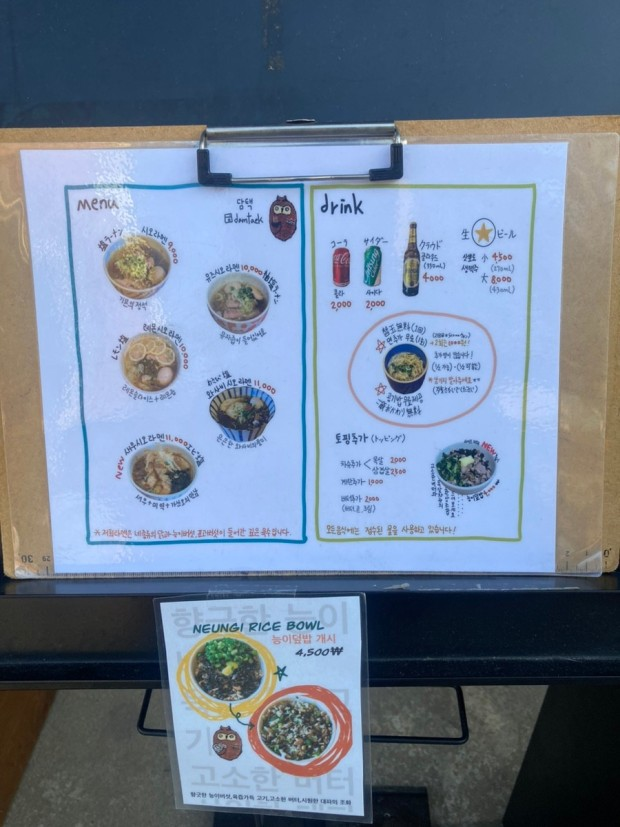 메뉴는 라멘 5개 + 능이덮밥이 있습니다.