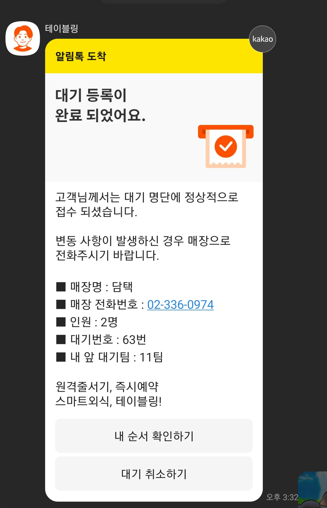 저는 옆에 카페에서 기다리고 있다가, 3시 되자마자 바로 가서 대기 번호를 받고왔어요 ㅎㅎ