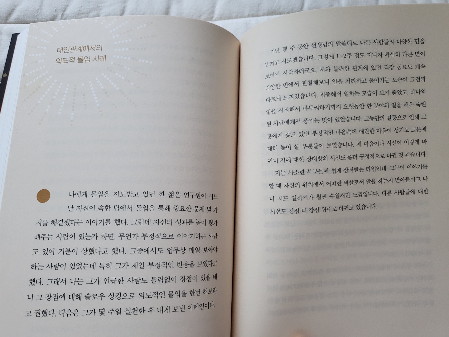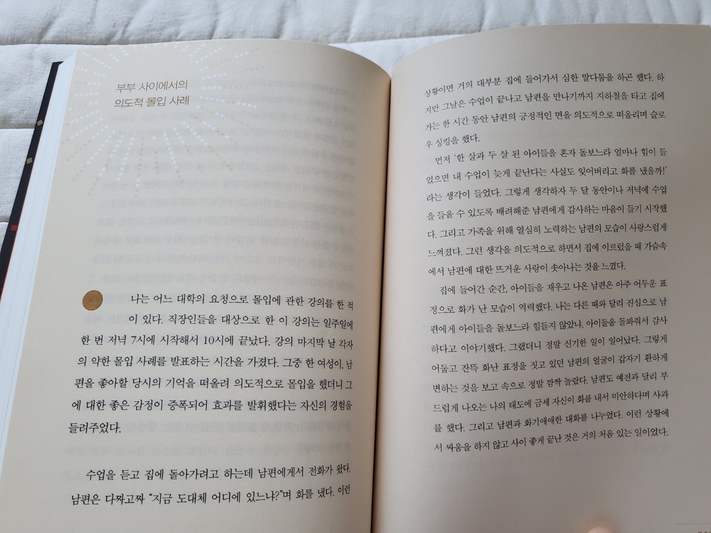 이런 원리로 부부관계 역시 남편 또는 아내의 좋은 점을 몰입하고 나니, 더 원만한 대화를 하고 서로를 더 이해하게 되었다고 한다. 밑에 사진은 이 책에 나오는 실제 사례이다.