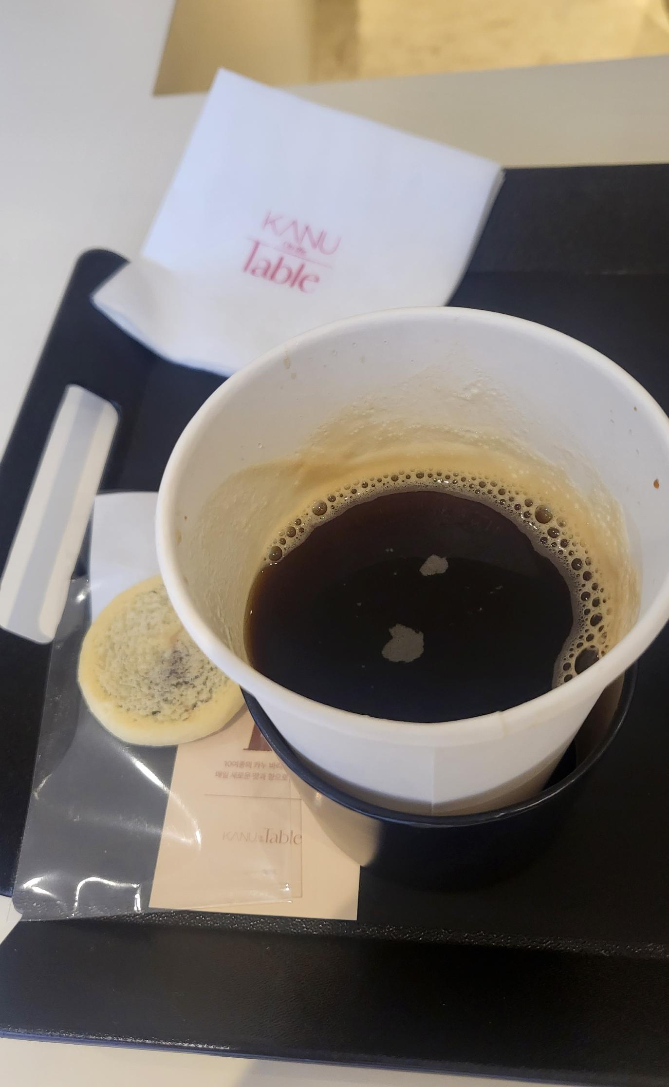 마무리로 카누 카드 반납과 함께 원하는 커피 한잔과 이렇게 쿠키를 줍니다.