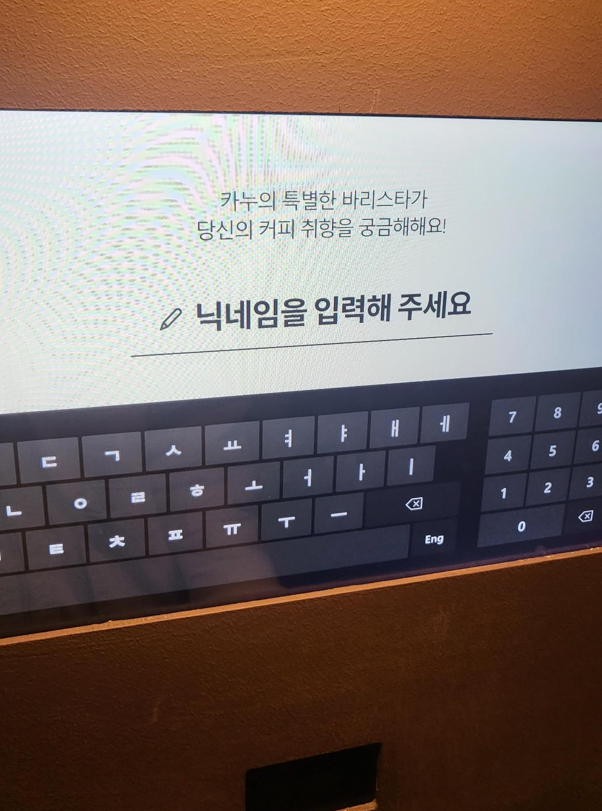 이렇게 처음에 입장하면 카드와 화면에 커피 설문조사를 합니다.