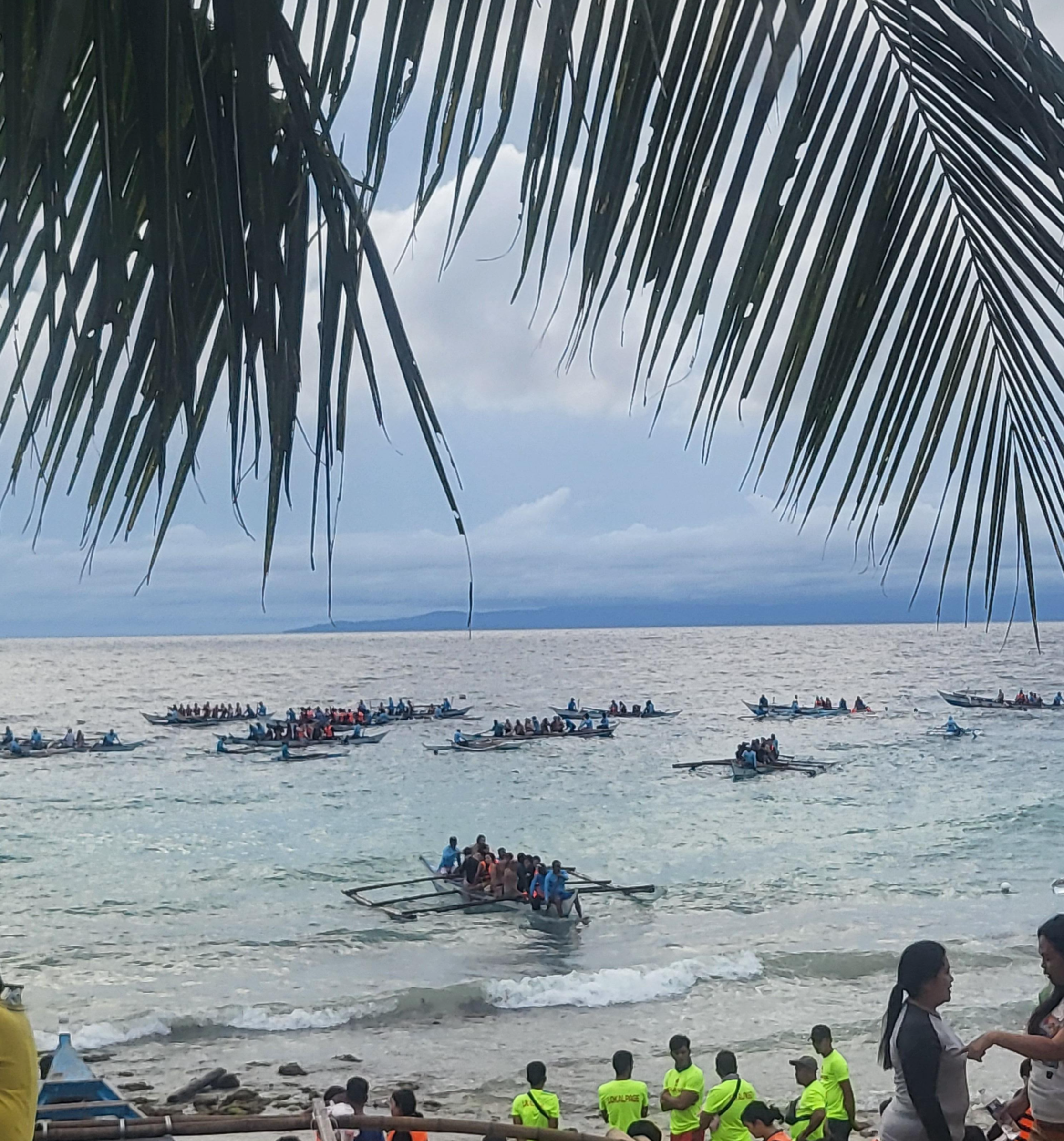 이렇게 가면 이제 고래상어에게 밥주시는 분이 배를 타고 천천히 저희쪽으로 옵니다!! 그럼 저희는 바닷가에 들어가있다가, 고래상어를 마주하면 되는 것이죠!!