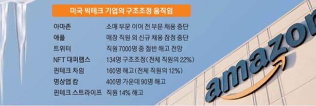 앞으로의 경기 침체에 대한 공포심이 커지면서 미국 빅테크 기업들은 선제적으로 정리해고와 동결에 나서고 있습니다. 금리 인상이후 나스닥이 3.36% 하락하였습니다. 앞으로의 세계불황 속에서 빅테크 기업들은 앞으로의 리스크를 미리 줄여나가고자 하는 것이죠. 이렇게 큰 대기업들이 이런 자세를 취한다면, 앞으로 세계경제가 점점 더 두려워지네요.