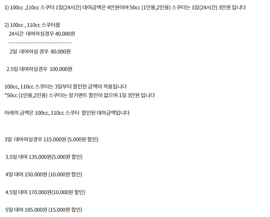 저는 50cc로 24시간 대여를 해서, 3만원을 냈습니다!